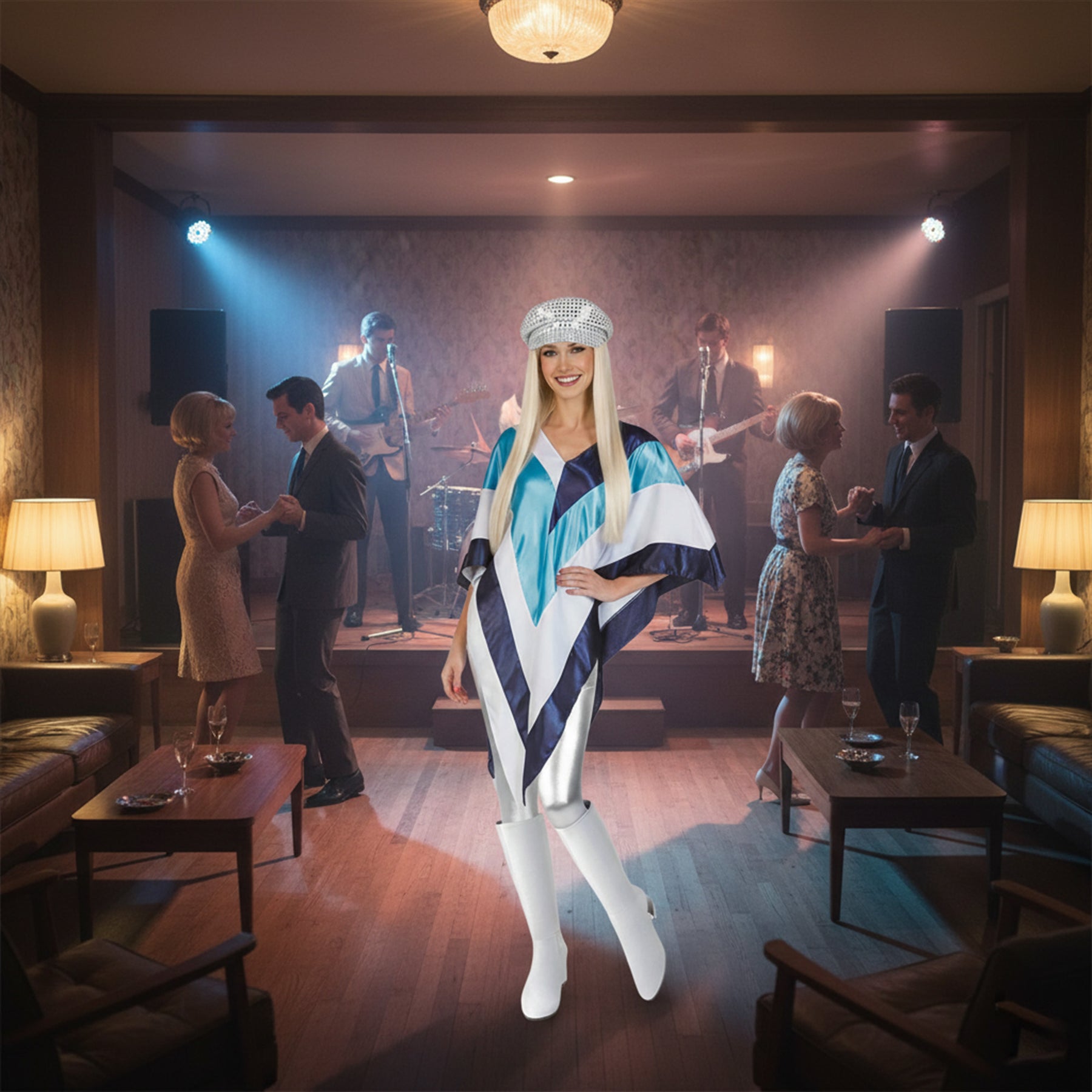 Ladies Disco Poncho Fancy Dress Costume