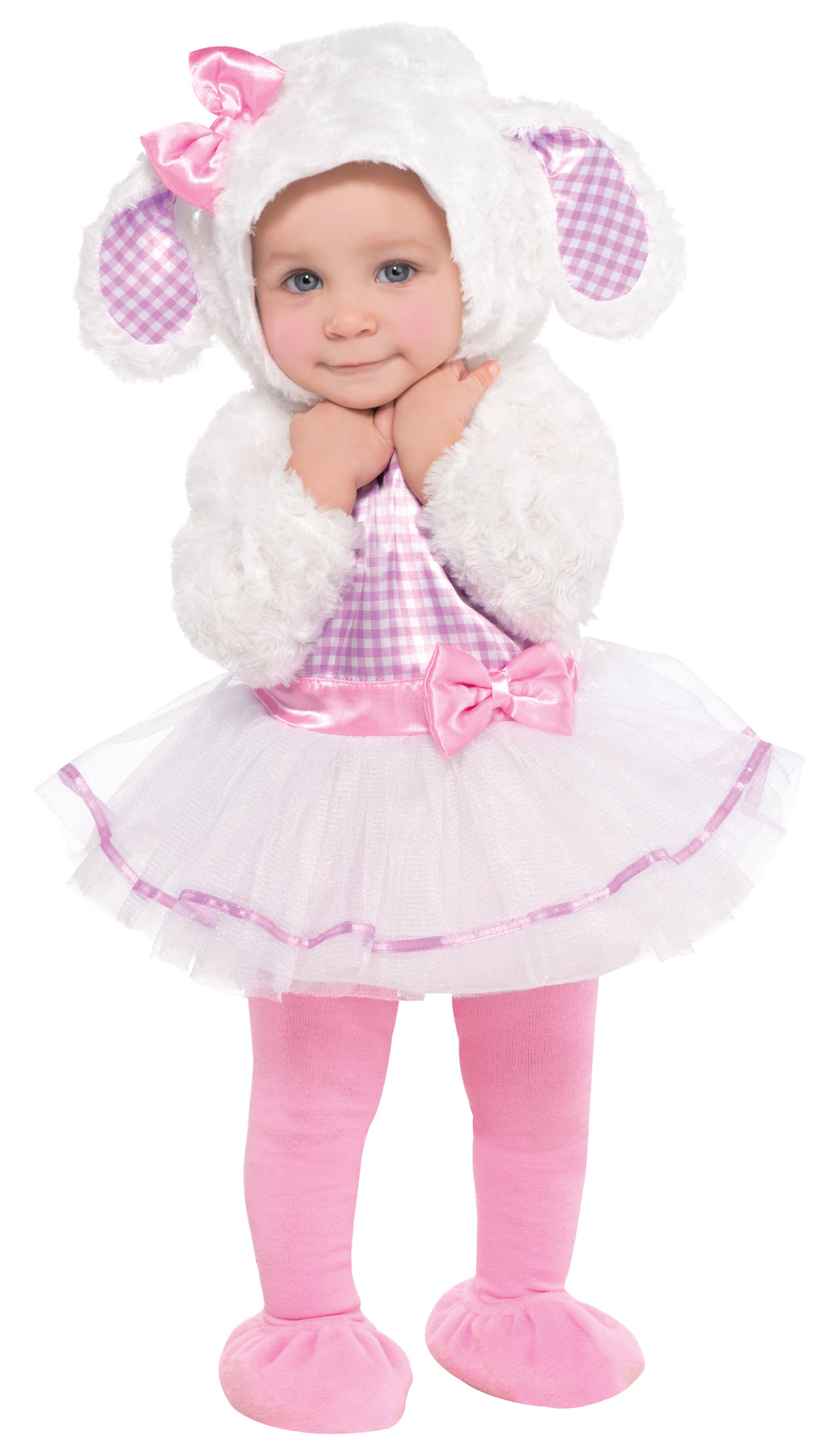lamb ears on the hood is a delicate pink bow. The look is finished off